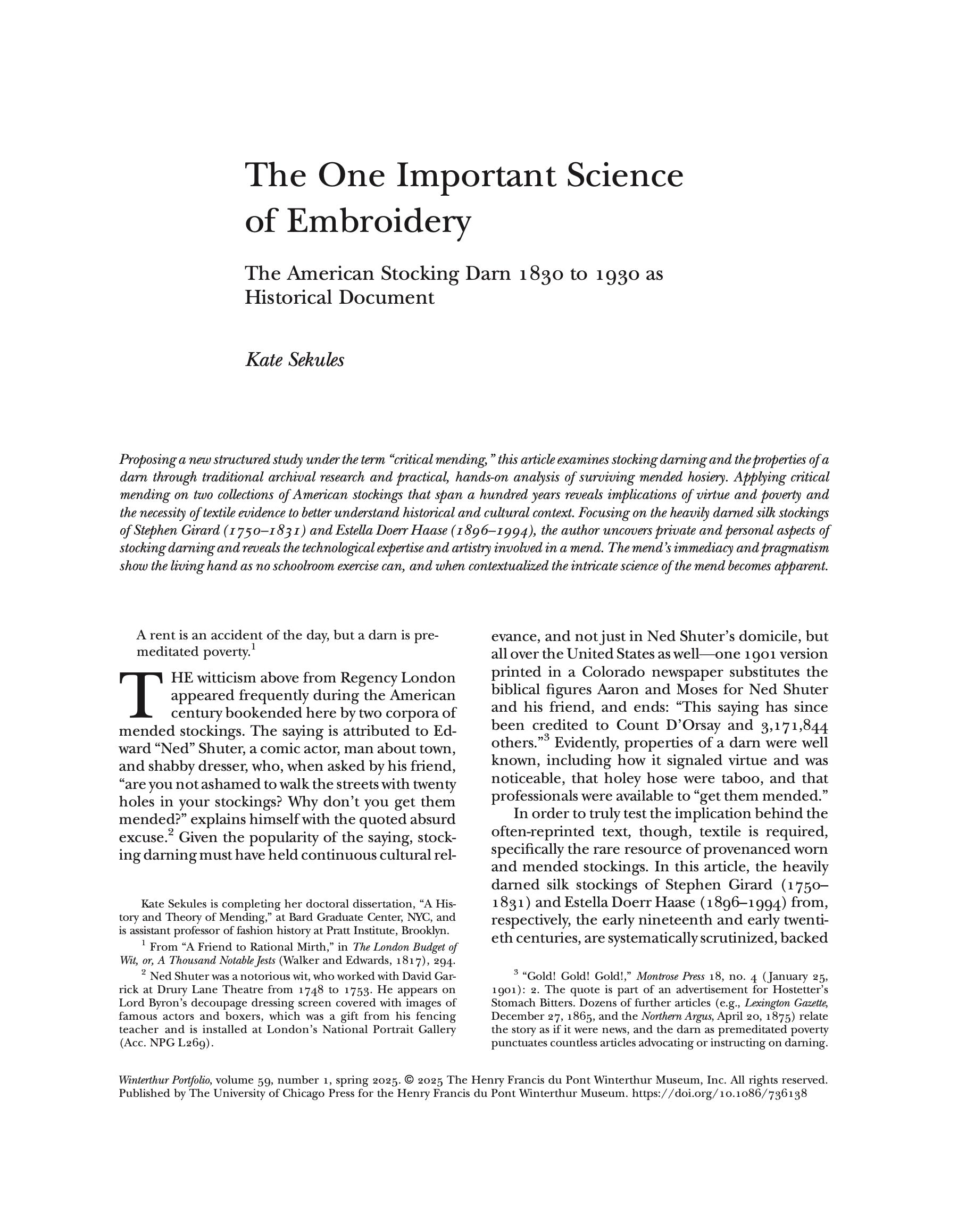 The One Important Science of Embroidery The American Stocking Darn 1830 to 1930 as Historical Document ABSTRACT Proposing a new structured study under the term... View full details